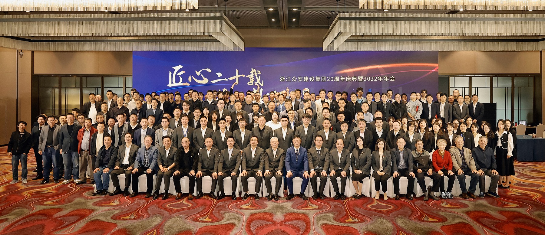 匠心二十載,攜手新征程。2023年4月12日,浙江眾安建設集團20 周年慶典暨 2022 年年會在杭州中豪國際大酒店 3 樓國際廳隆重舉行。