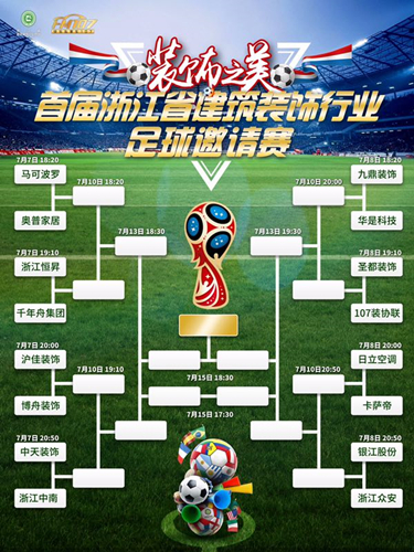 本次邀請賽決賽及閉幕式于7月15日晚舉行,讓我們祝愿各個裝飾企業在比賽中取得好成績,也共同期待首屆浙江省建筑裝飾行業足球邀請賽“大力神杯”得主的誕生!共同期待足球“堅韌不拔、勇攀高峰”的精神在浙江省建筑裝飾行業傳揚和激勵,為建設“和美浙江”提供精神食糧!