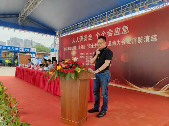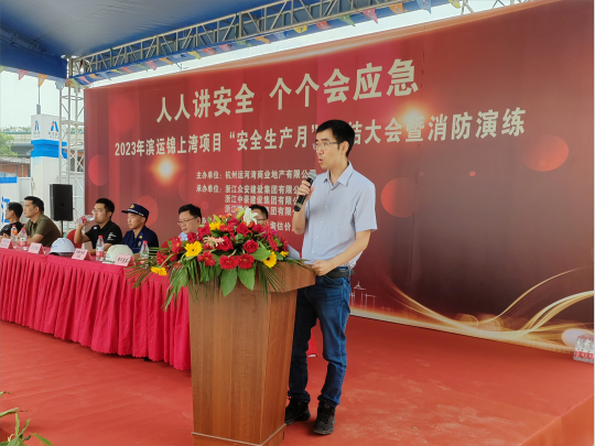 為深入學習領會習近平總書記關于安全生產重要論述,貫徹落實上級安全生產各項工作部署,組織好第22個“安全生產月”工作,進一步加強項目部全員的應急能力建設,提高防災減災救災和急難險重突發公共事件處置保障能力,結合“安全生產月”活動主題,有效增強項目全員的自救防范能力和消防意識,6月30日上午由浙江眾安建設集團主要承辦的杭州濱運錦上灣項目各標段2023年“安全生產月”總結大會暨消防演練順利舉行。拱墅區住建局質安監副站長王揚、拱墅消防大隊胡文楷、濱江集團城市總經理樓巍先生,運河集團投發公司李勇、浙江眾安建設集團有限公司總經理倪允揚、集團工管中心總經理高科平等150余人參加。